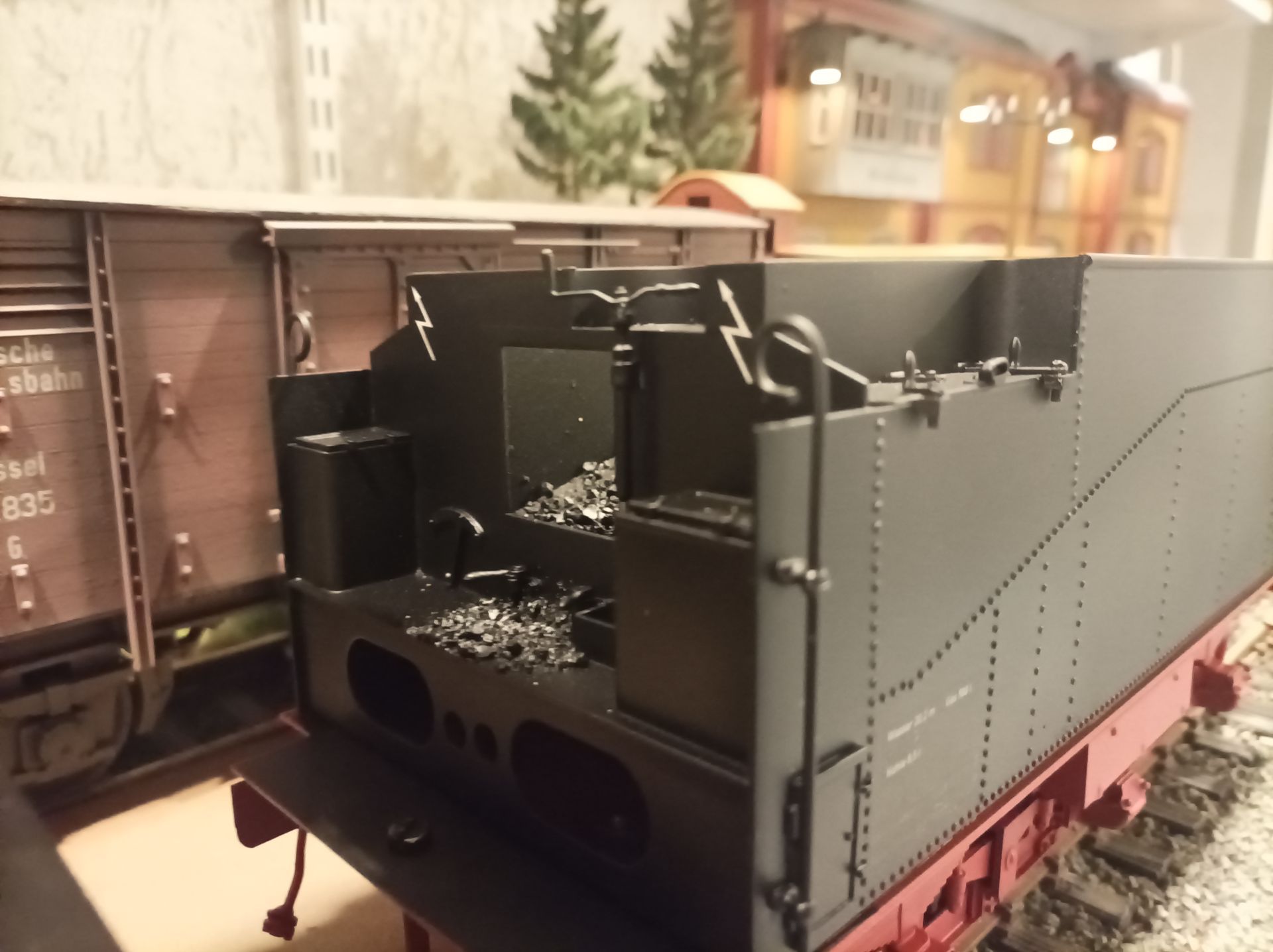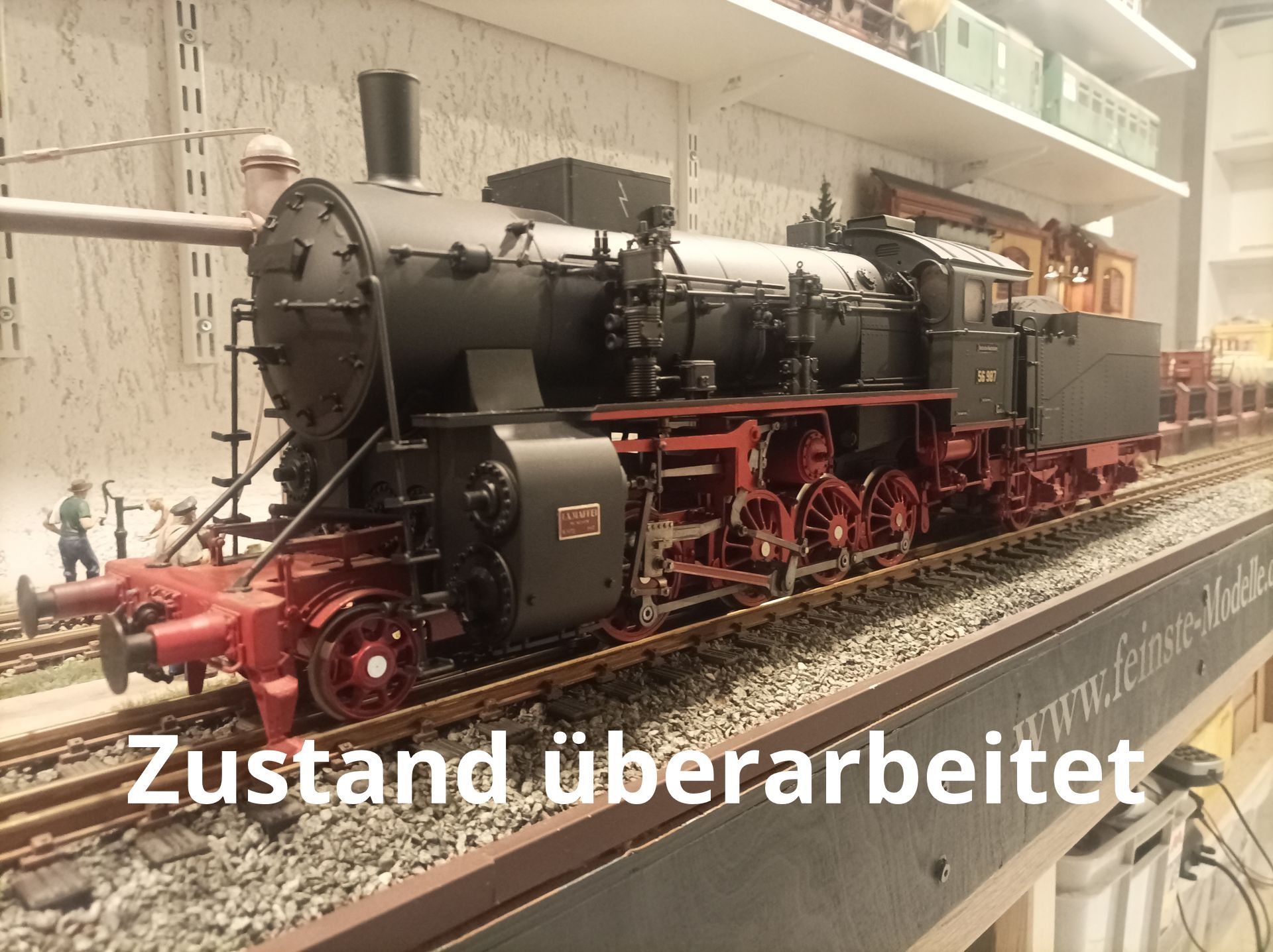 Die Lok wurde teilweise komplett neu bzw. Bauteile lackiert. Ziel ist es, einen "RAW-frischen "Zustand der 30 er , also Epoche II DRG darzustellen. Ebenfalls wurde die Lok auch neu beschriftet und mit neuem Decoder ( ZIMO) sowie Sound ausgerüstet. Weiterhin wurden die DRG- typischen Bauteile wie Griffstangen sowie Laternen neu angefertigt und verbaut.