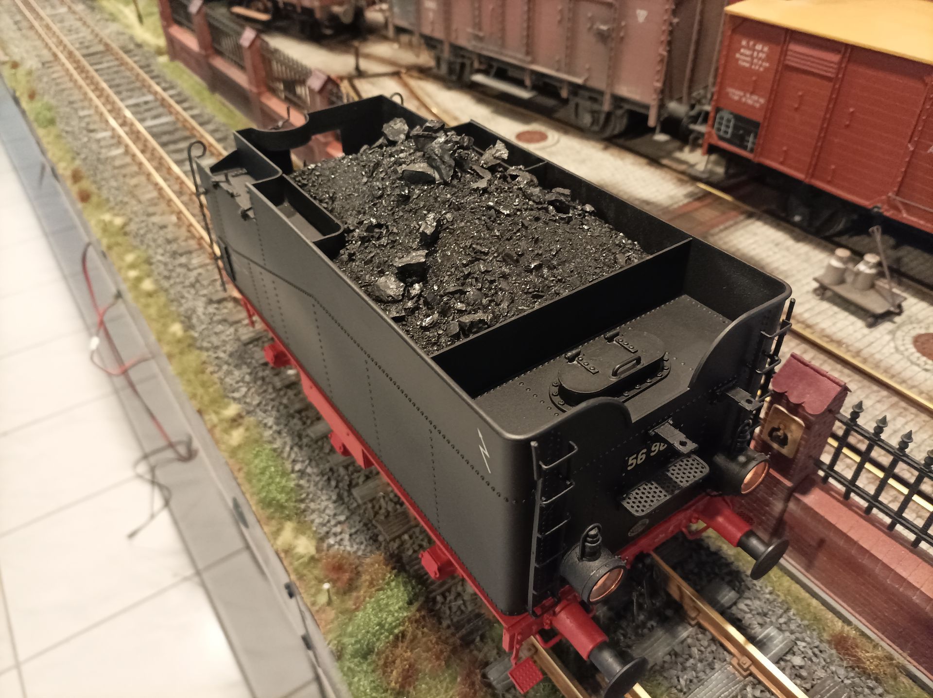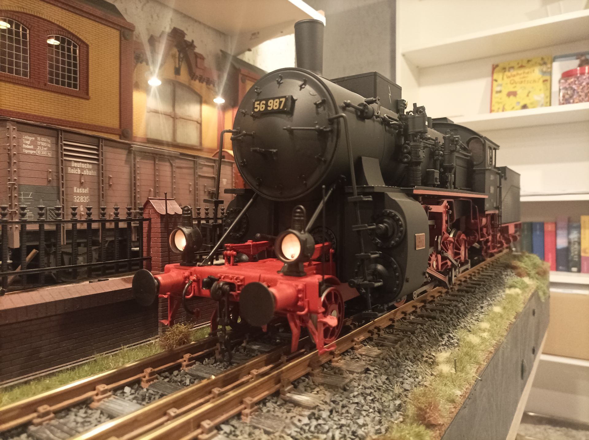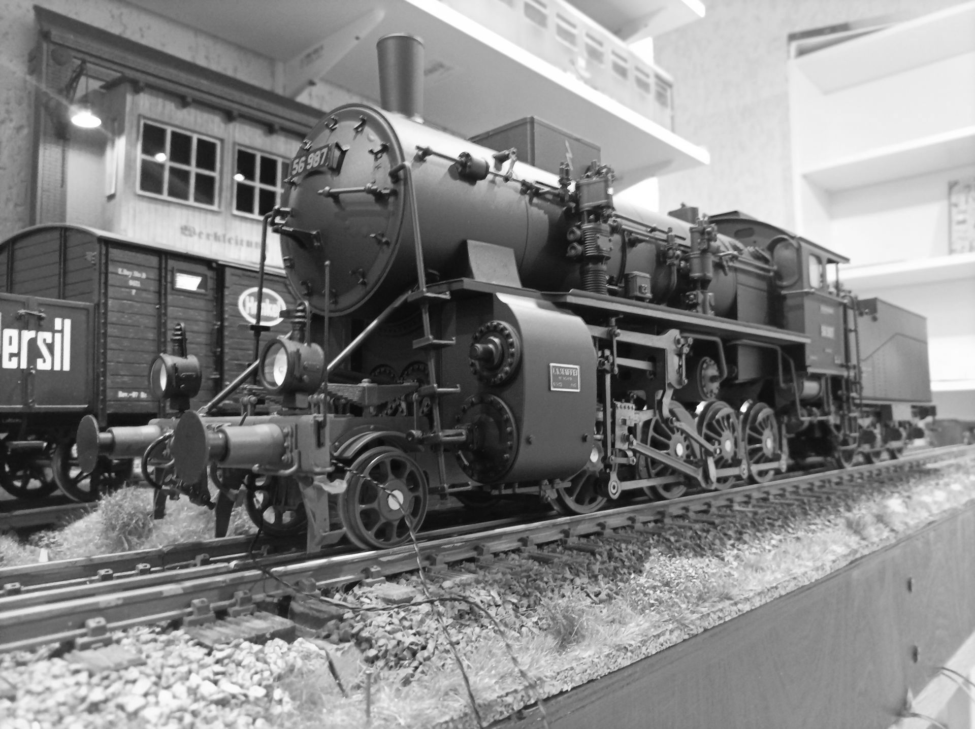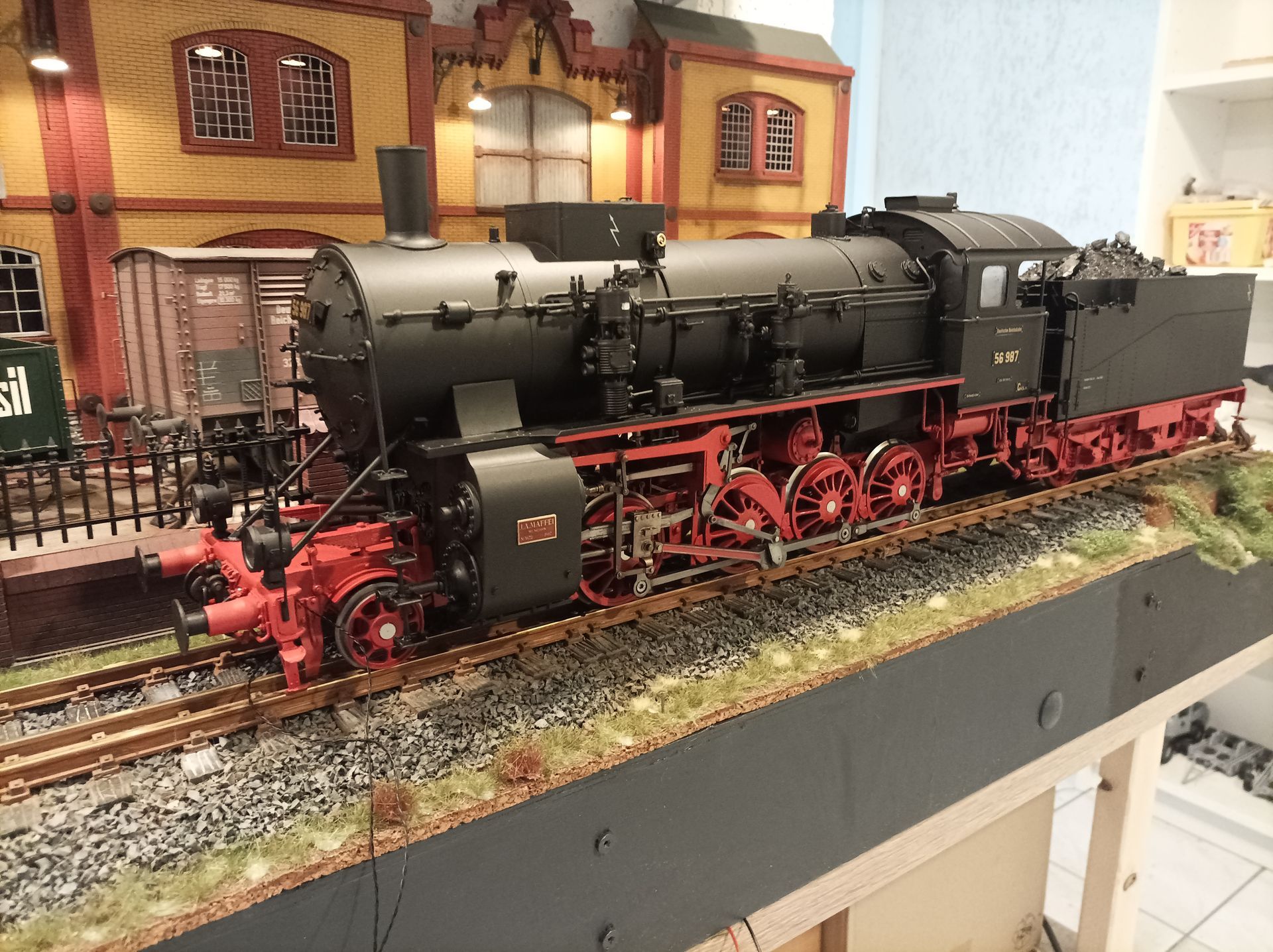 Die Lok ist beschrtiftet als 56 987 , Rbd Nürnberg Bw Rothenkirch. Die Lok war eine der letzten betriebsbereiten Maschinen dieser Baureihe, sie ist 1946 als Heizlok ausgemustert wurden.