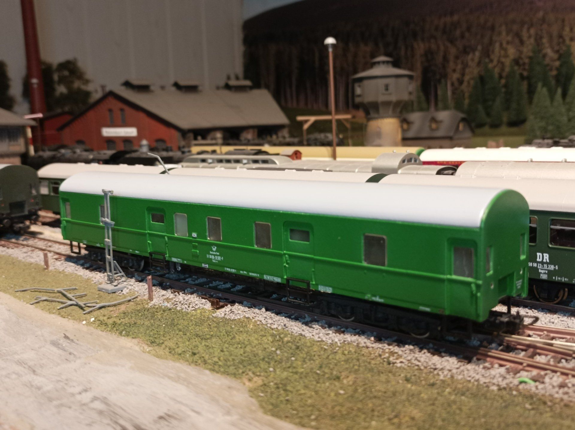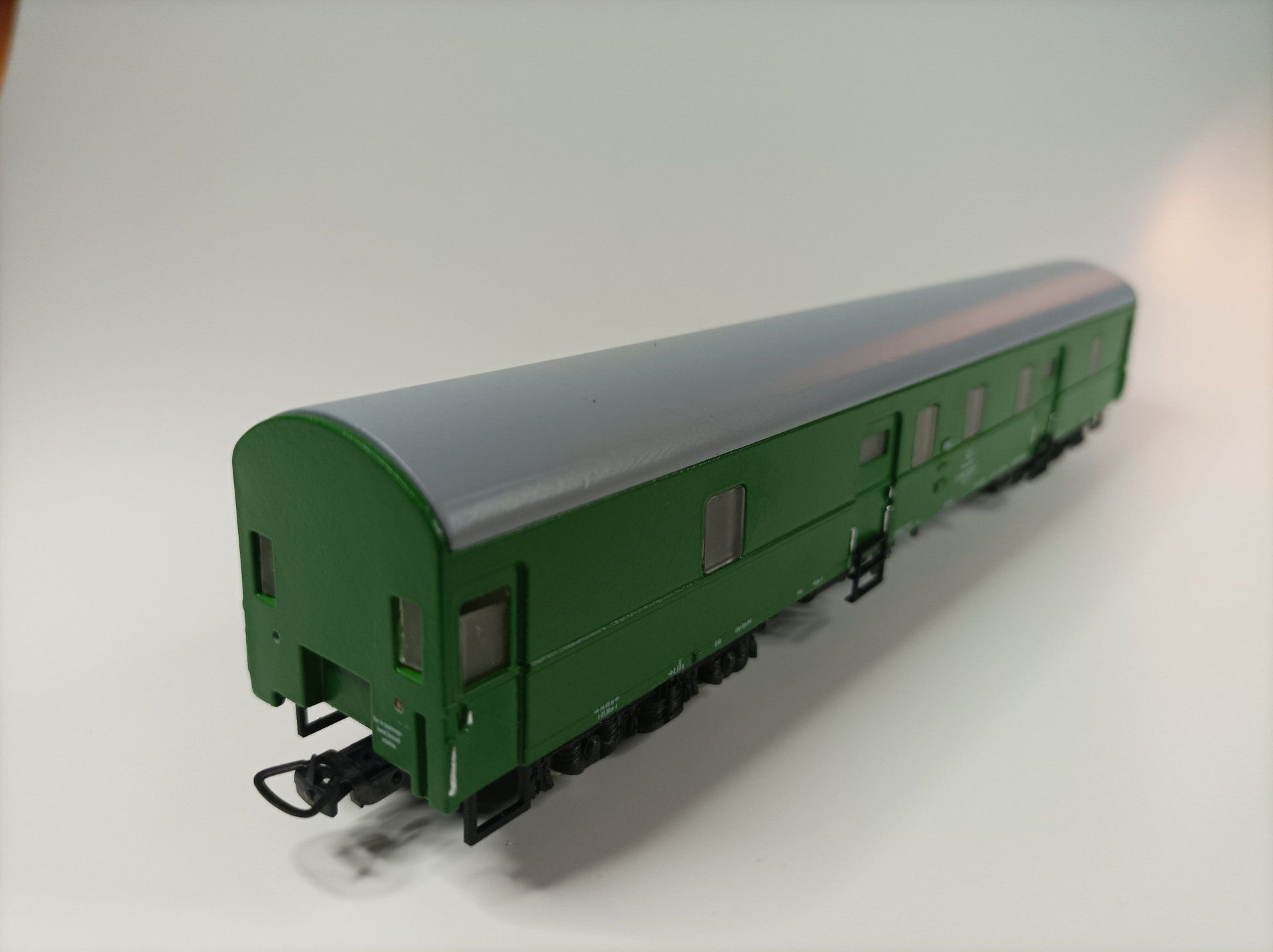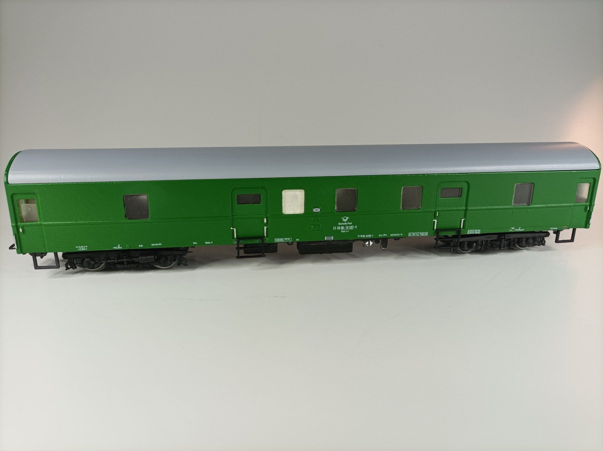 In den 60er Jahren wurde in der DDR ein umfangreiches Rekonstruktionsprogramm durch die DR durchgeführt. Die DP (Deutsche Post) schloss sich teilweise diesen Programm an .Dabei wurden Bauteile vereinheitlicht und modernisiert. Bei der Verwendung altbrauchbarer Bauteile wurden insgesamt 11 Wagen dieses Typs rekonstruiert. 1962 wurde ein Prototyp erschaffen, welcher in sich in einigen Details von der späteren Serie unterschied. Dargestellt ist der Serienpostwagen. Die vierachsigen Wagen war für die Unterwegsbearbeitung von Briefsendungen sowie den Transport von Paketen, Tageszeitungen und Zeitschriften vorgesehen. Anfang der 70er Jahre wurden die alten Drehgestelle (Görlitz III) gegen moderne Görlitz IV- Drehgestelle getauscht. Ebenfalls wurde die Wagen umbeschriftet, die Wagen erhielten UIC Beschriftung. Ebenfalls änderte sich die Farbgebung, diese wurde der jeweils üblichen DR Farbgebung angepasst. Hersteller war das RAW Gotha.