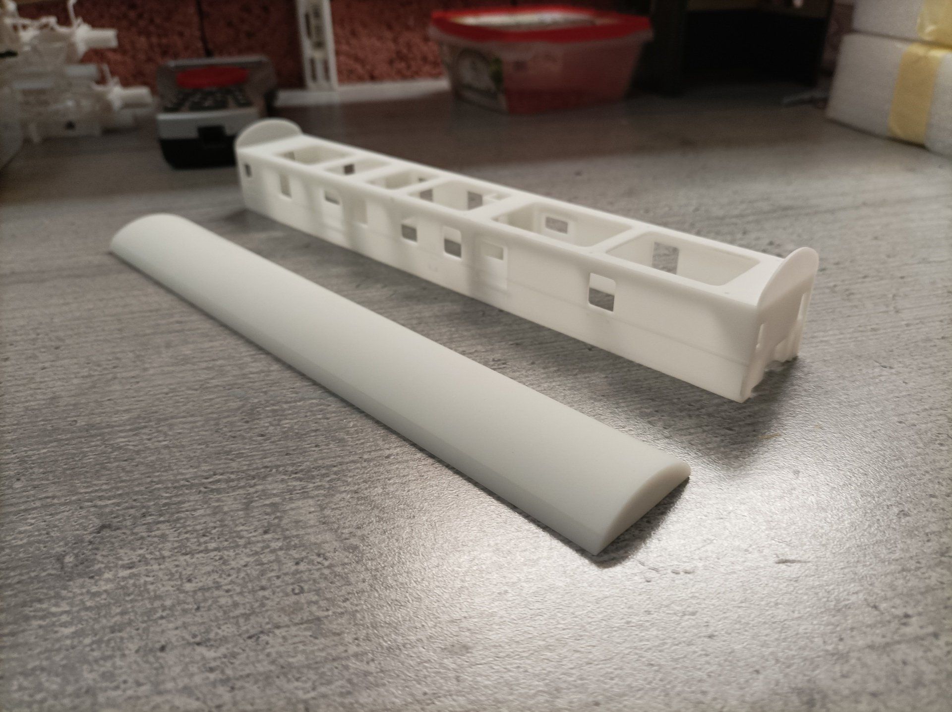 Mit den angebotenen Bausatz kann der REKO Postwagen der DR Post bII/20,8 Reko dargestellt werden. Der Bausatz beinhaltet ein gedrucktes Gehäuse, Dach, Fenster, Beschriftung und eine optionale Inneneinrichtung ( bei ggf. Eigenbau des Fahrwerkes).