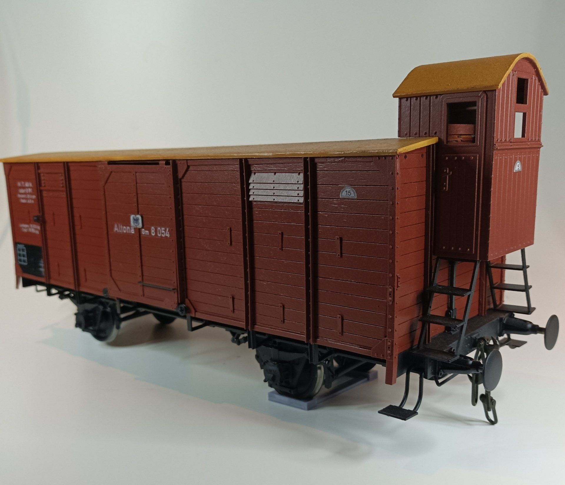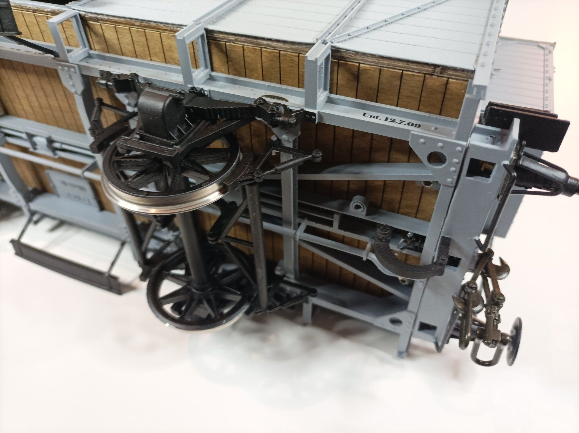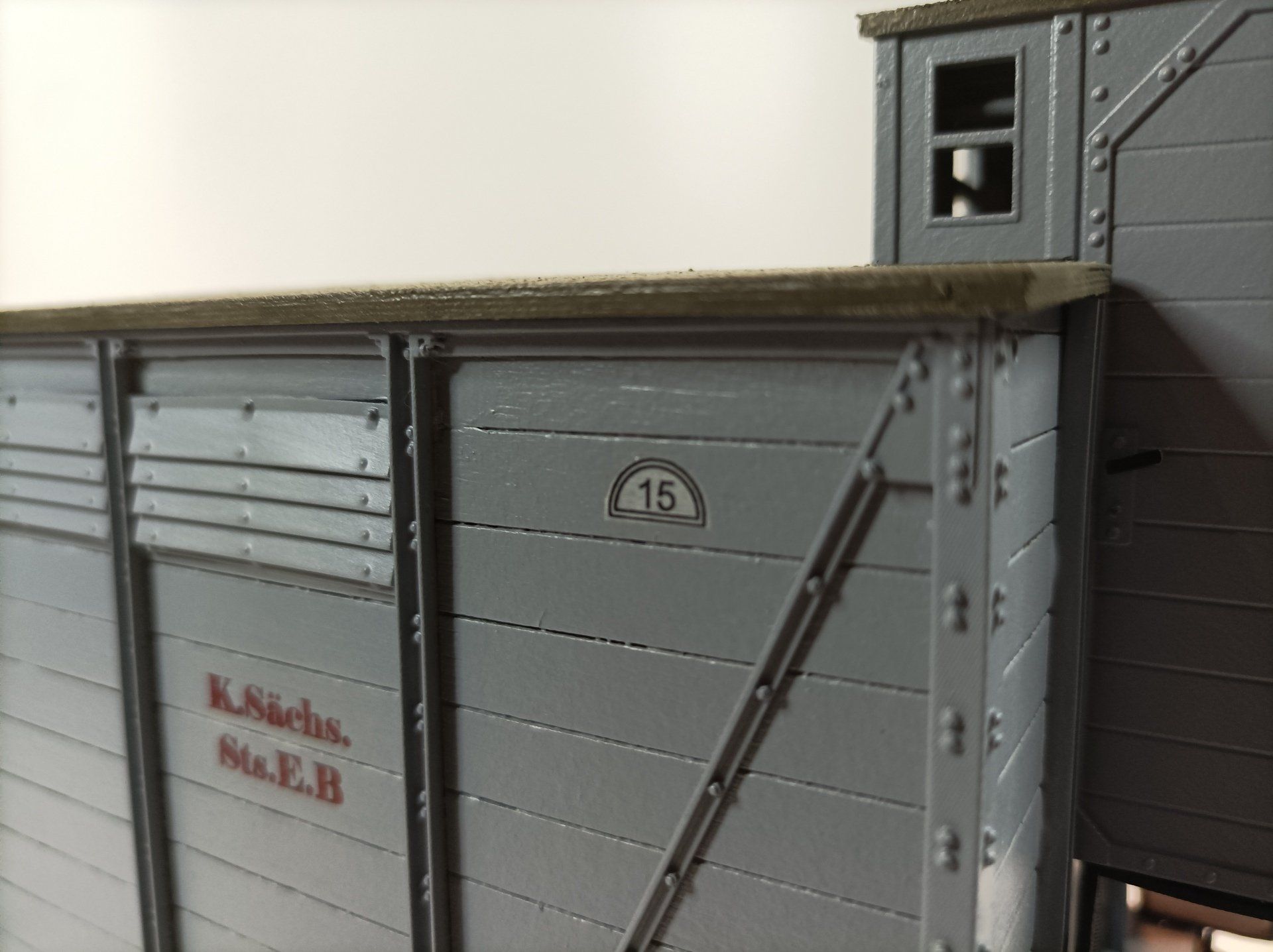 * exakte Darstellung der Bauartunterschiede der verschiedenen Bahngesellschaften, Dach mit Leinen bespannt